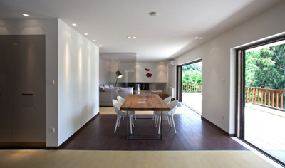 Raspored prostorija je, recimo postavljen klasično – u donjoj etaži prostorije dnevne zone, a na katu prostorije noćne zone.