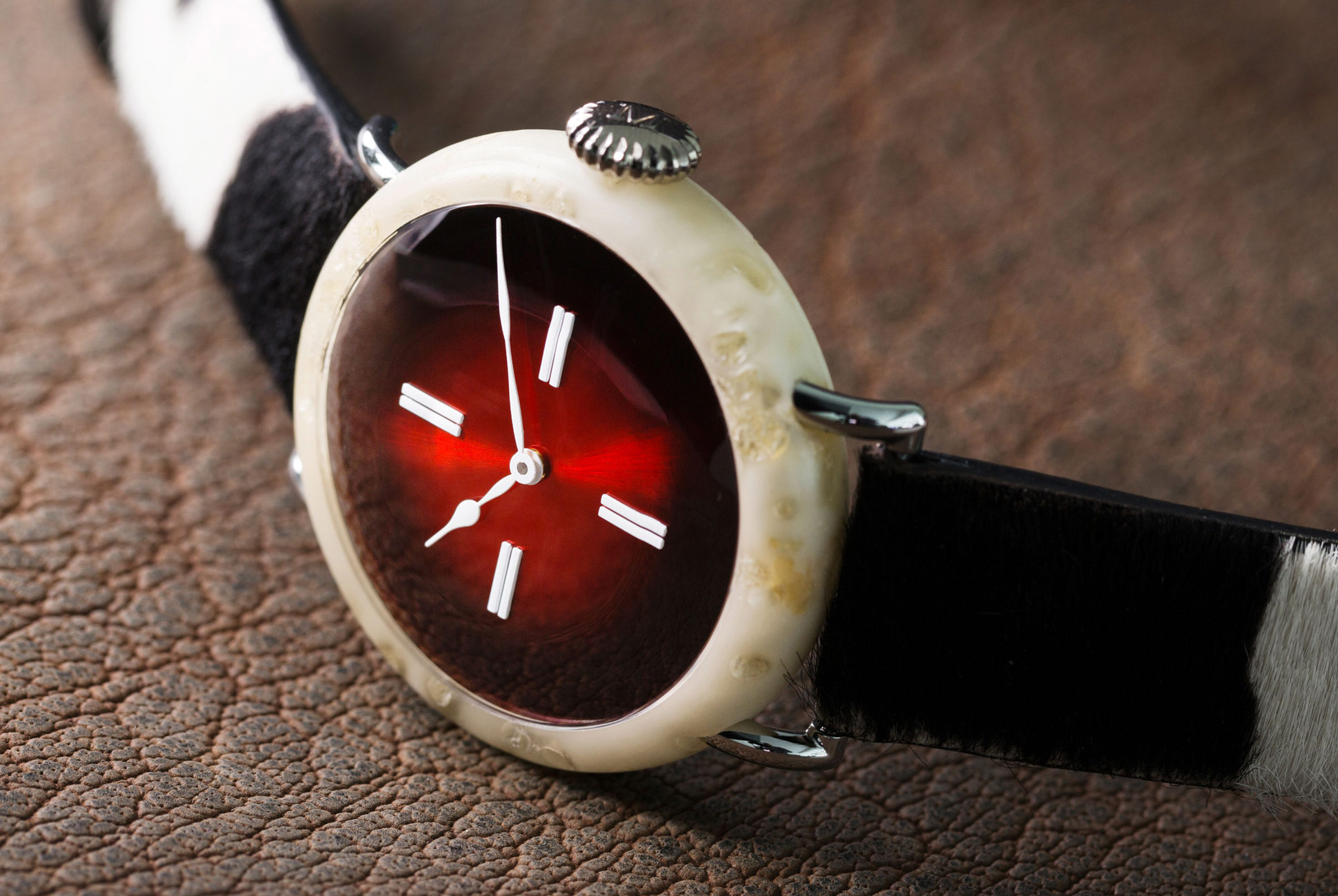 Na tu je temu osmislio jedinstveni sat, kojeg je proizveo samo u jednom primjerku i koji je doista 100% Swiss Made. Međutim kvaka je u tome što je proizveden od sira. Da pravog, finog, 100% švicarskog sira. U sami sir, konkretno Vacherin Mont d’Or dodao je nešto smole kako bi kućište bilo čvršće te kako se, naravno, sir s vremenom ne bi pokvario.